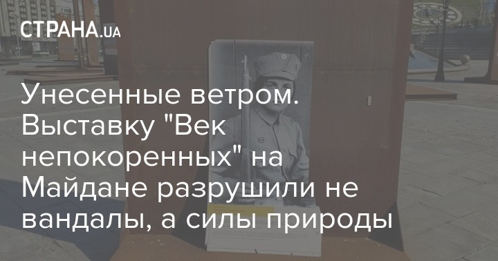 В понедельник сотрудники Музея Революции Достоинства сообщили, что вандалы повредили выставку "Век непокоренных" на Майдане Независимости в центре Киева. Однако в полиции установили, что экспозицию просто сдуло ветром.