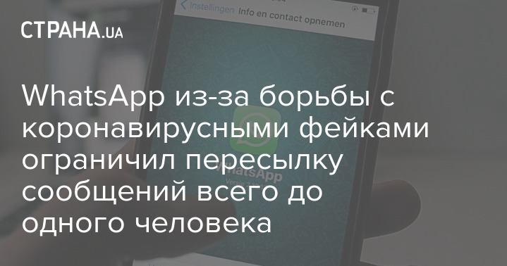 В мессенджере WhatsApp объявили о введении ограничений на отправку популярных ("вирусных") сообщений. Теперь отправлять их можно только одному человеку за раз.