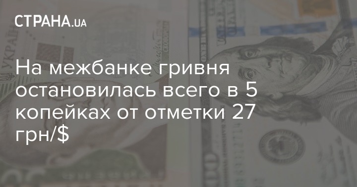 На межбанке гривня остановилась всего в 5 копейках от отметки 27 грн/$