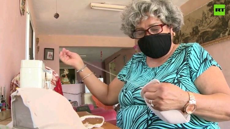 На Кубе женщины приспособились шить защитные маски от коронавируса из бюстгальтеров