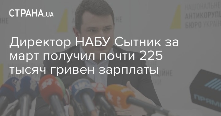 Зарплата за март директора Национального антикоррупционного бюро Украины Артема Сытника, которого Рада собирается увольнять за то, что суд признал его коррупционером, составила 224 495 гривен.