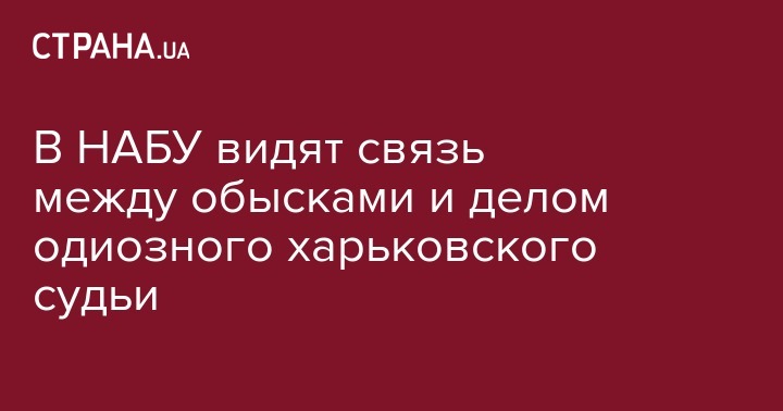 Национальное антикоррупционное бюро Украины считает, что между обысками ГПУ, которые в пятницу, 5 августа, провели в здании ведомства, и уголовным делом, открытым в отношении харьковского судьи, обвиненного во взяточничестве, существует прямая связь. Об этом пресс-служба НАБУ сообщает на официальной странице в социальной сети Facebook.