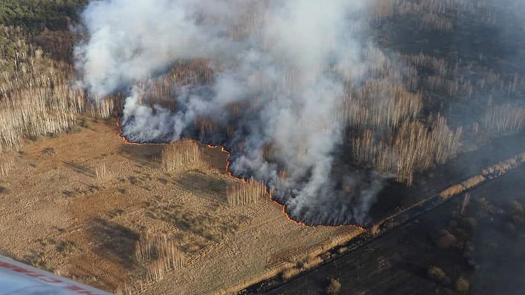 В Чернобыле горит лес. Фото: Киевская служба спасения/Роман Ткачук