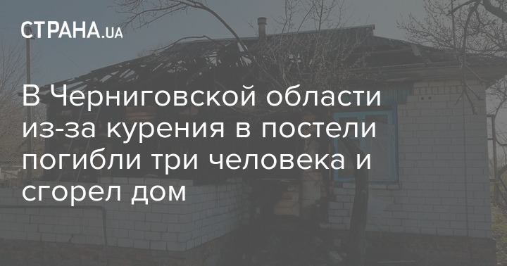 "Около пяти утра 18 апреля спасателям поступила информация о пожаре дома в частном хозяйстве в селе Ховмы Борзнянского района. Через час пожарные ликвидировали пожар и обнаружили в доме тела супругов и их взрослого сына. Предварительно причиной пожара стала неосторожность при курении в постели одного из мужчин", - говорится в сообщении.