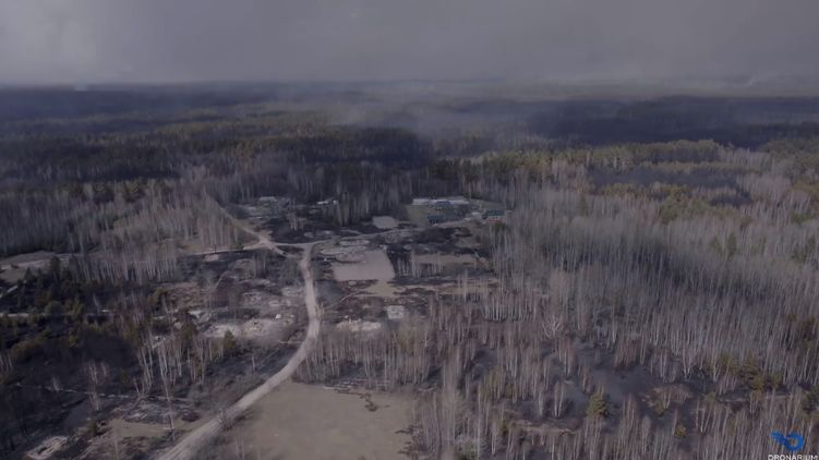 В сети появилось видео, на котором с высоты птичьего полета запечатлены последствия пожаров в Чернобыльской зоне. В ролик попали кадры с уничтоженными селами и сгоревшими деревьями.