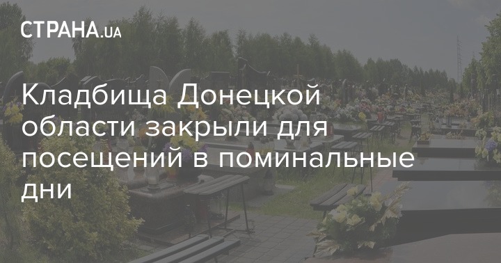 В Донецкой области в поминальные дни закроют кладбища, исключения будут сделаны только для похорон. Посещение кладбищ будет запрещено в рамках мер по противодействию распространения коронавирусной болезни.