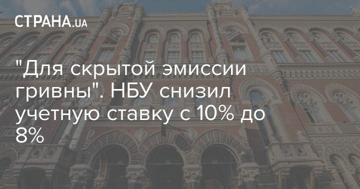 "Нацбанк сегодня снизил учётную ставку сразу на 2%. Это подаётся как большой успех и как путь к увеличению кредитования экономики. Но на самом деле к кредитованию реального сектора решение НБУ никакого отношения не имеет. Это чисто техническая операция для обеспечения скрытой эмиссии гривны", - пишет Telegram-канал "Политика Страны".