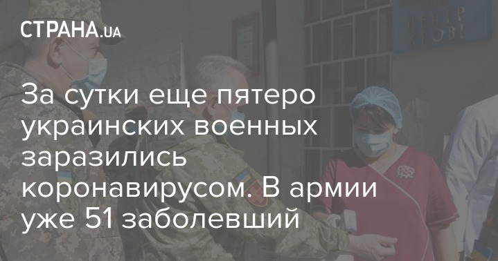 В Украине уже 51 военнослужащий Вооруженных сил Украины инфицирован коронавирусом, за последние сутки Covid-19 выявили у пятерых человек.