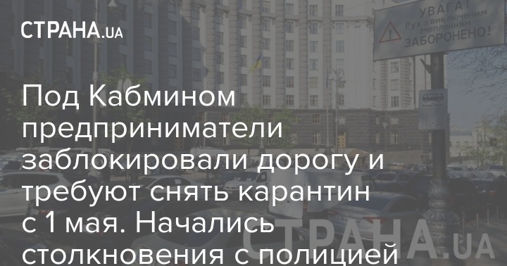 В 09:00 на улице Грушевского под стенами Кабмина началась акция протеста. Собравшиеся требуют завершить карантина с 1 мая и дать возможность малому бизнесу "кормить свои семьи". Люди приехали на автомобилях и этим заблокировали проезд через улицу Грушевского.