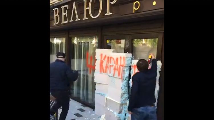Вход в ресторан "Велюр" перекрыли пеноблоками. Фото: скриншот с видео