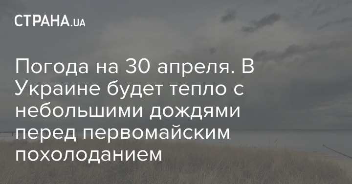 Апрель в Украине завершится дождями и грозами на западе и севере, теплом в центральных областях с температурой воздуха до +20...+25 градусов, похолоданием на юге (местами +12...+14 градусов) и в западных областях, где сегодня, 30 апреля, будет +16...+19 градусов.