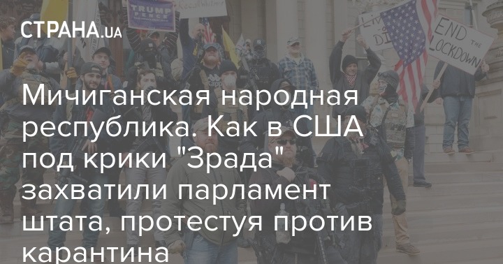 Произошло это в американском штате Мичиган. Там сторонники Дональда Трампа, который тоже хочет поскорее закончить карантин, собрались у местного Капитолия (здания, где находится органы власти штата). В основном это крепкие мужчины с ружьями и винтовками. Они требуют, чтобы режим самоизоляции был наконец завершен. Как развивается эта история читайте в материале "Страны".