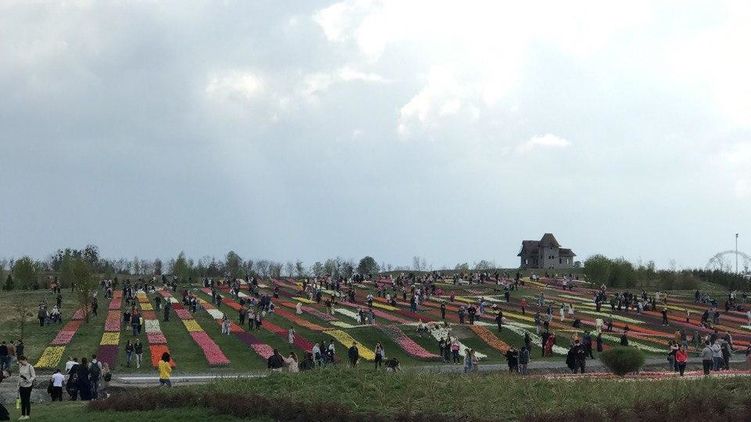 Посмотреть на тюльпаны в закрытом дендропарке возле Киева собрались сотни людей. Фото: УНИАН