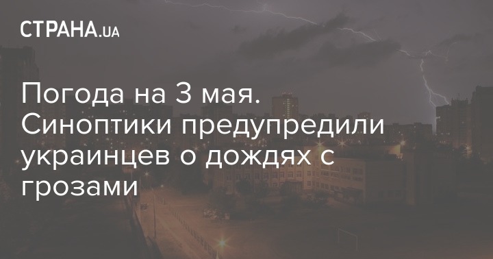 В воскресенье, 3 мая, погода в Украине будет дождливой и с грозами. Местами также будет небольшое похолодание.