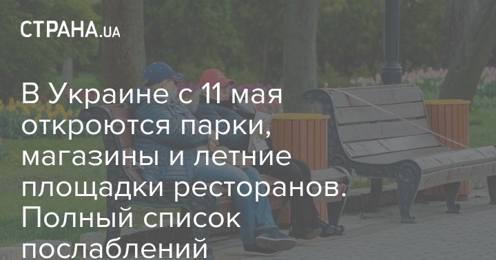 В Украине с 11 мая откроются парки, магазины и летние площадки ресторанов. Полный список послаблений