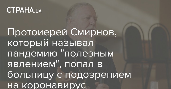Протоиерей Смирнов, который называл пандемию "полезным явлением", попал в больницу с подозрением на коронавирус