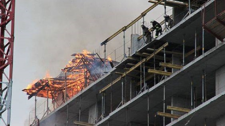 Поскольку добраться до 12 этажа строящегося здания для пожарных было задачей не из легких, то огонь полыхал довольно долго (минут 40). В конце концов добравшиеся до места возгорания пожарные затушили огонь, который к тому моменту и сам пошел на убыль.