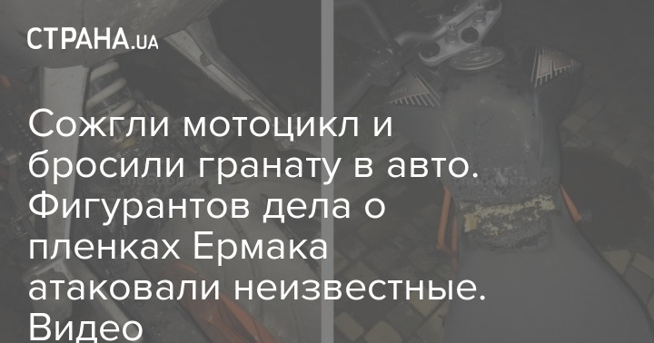 Сожгли мотоцикл и бросили гранату в авто. Фигурантов дела о пленках Ермака атаковали неизвестные. Видео