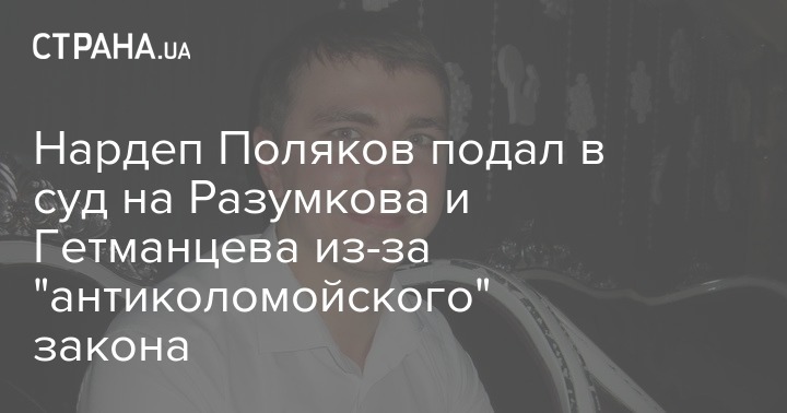 Исключенный из фракции "Слуга народа" Антон Поляков подал иск в Окружной административный суд Киева против председателя парламента Дмитрия Разумкова и главы финансового комитета парламента Даниила Гетманцева из-за принятия "антиколомойского" закона.