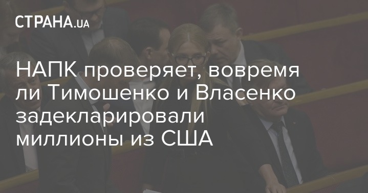 После того как нардепы Юлия Тимошенко и Сергей Власенко задекларировали доход в размере около 150 миллионов гривен каждый от американской юридической фирмы, Национальное агентство по предупреждению коррупции (НАПК) проверит, вовремя ли они предоставили соответствующие данные госорганам Украины.
