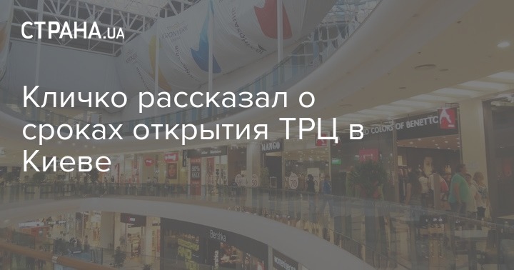 Киевский мэр Виталий Кличко заявил, что крупные торговые центры в столице нужно открывать только после того, как будет восстановлена работа метро. Также этому должно способствовать улучшение эпидемиологической ситуации.