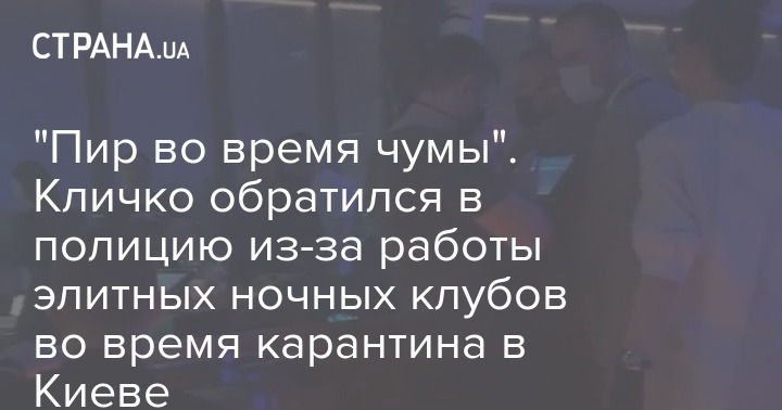 "Хотел бы отметить, я видел в выходные в соцсетях видео из некоторых ночных клубов столицы. Скажу откровенно: я возмущен! Толпы людей - это некий пир во время чумы! Городская власть не позволяла открывать ночные клубы и другие развлекательные заведения! И я обращаюсь в полицию проверить такие заведения. И должна быть строгая ответственность их владельцев! А тем, кто рвется на массовый ночной отдых, скажу: вряд ли вы будете такими веселыми, если попадете в инфекционное отделение", - сказал Кличко.