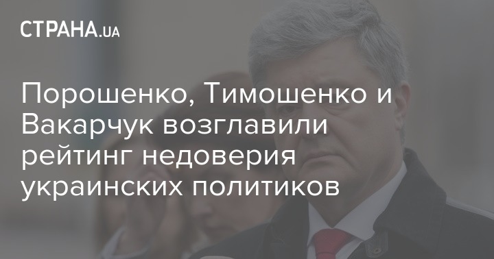 Украинцы больше всего не доверяют бывшему президенту, лидеру "Европейской солидарности" Петру Порошенко, главе фракции "Батькивщина" Юлии Тимошенко и депутату от фракции "Голос" Святославу Вакарчуку.