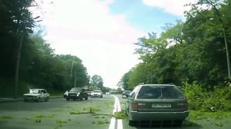 Появилось видео, как в Киеве дерево рухнуло прямо на проезжую часть