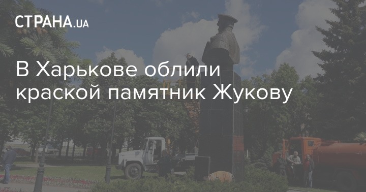В Харькове уже второй раз за полгода облили краской памятник советскому маршалу Георгию Жукову. Пострадала в основном верхняя часть постамента.