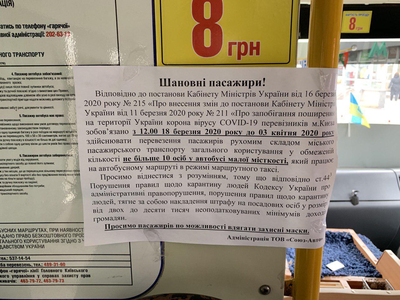 09:50 Сегодня в Киеве наземный общественный транспорт должен работать без ряда ограничений. Самое главное из которых, это отмена специального пропуска для проезда. Также в салон должны пускать только в защитных масках (или респираторах) и с ограничением до 50% от количества сидячих мест.