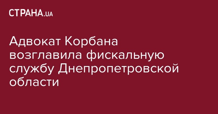 Адвокат Корбана возглавила фискальную службу Днепропетровской области