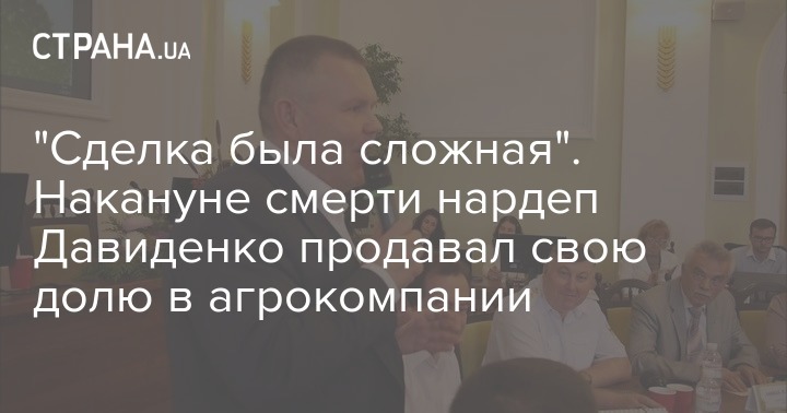 Депутат Рады Валерий Давиденко, труп которого был обнаружен вчера в киевском офисе, в последнее время занимался продажей своей доли в одном из аграрных предприятий.