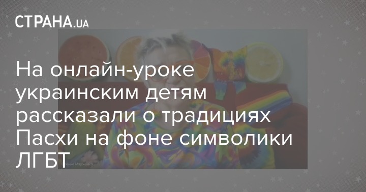 В рамках проекта "Всеукраинская школа онлайн" для пятого класса о пасхальных традициях за границей школьникам рассказала женщина на фоне радужного флага, который считается символом ЛГБТ-сообщества.