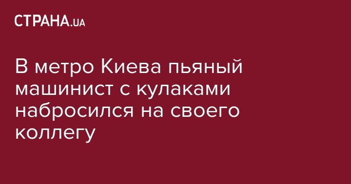В столичном метрополитене на станции "Лесная" 12 августа произошла драка - 24-летний машинист явился на работу в состоянии алкогольного опьянения и набросился с кулаками на своего коллегу, который хотел сообщить об этом начальству. Об этом сообщает пресс-служба главного управления Нацполиции г. Киева.