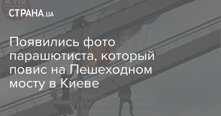 Появились фото парашютиста, который повис на Пешеходном мосту в Киеве