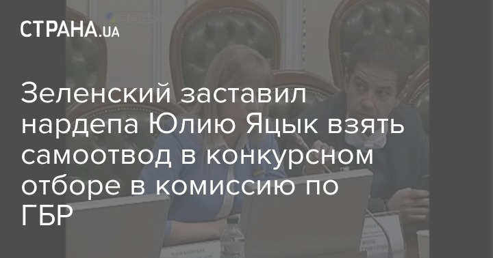 Председатель подкомитета по вопросам уголовного процессуального законодательства и оперативно-розыскной деятельности Юлия Яцык заявила, что президент Владимир Зеленский рекомендовал ей взять самоотвод в пользу Владлена Неклюдова при выборах в комиссию по подбору руководства ГБР. Она сказала, что подчинится этому решению, хотя с ним и не согласна.