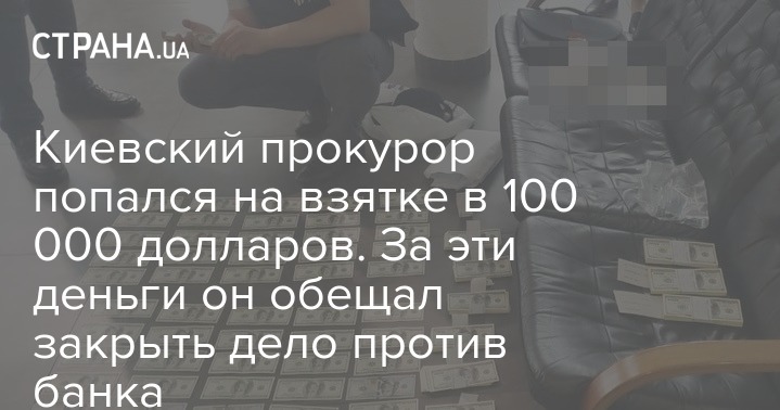 В Киеве оперативники Департамента стратегических расследований Нацполиции задержали работника городской прокуратуры, который брал взятку. Он получал 100 000 долларов за то, чтобы закрыть дело против банковского учреждения.
