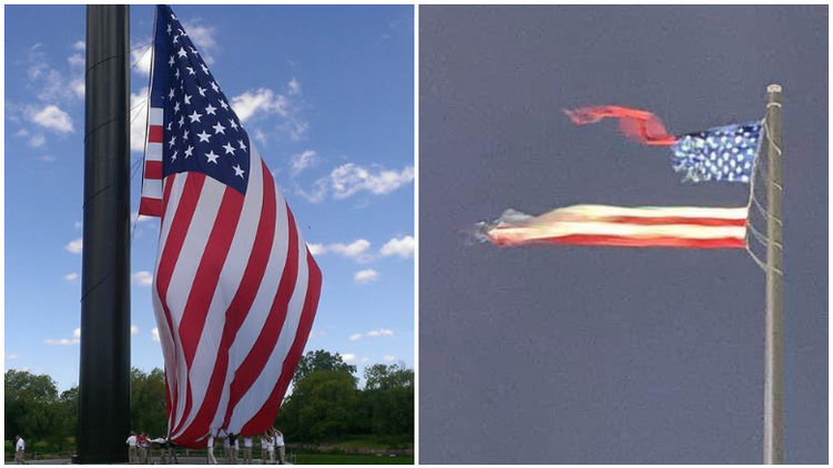 Молния разорвала самый большой флаг США, фото: Scott Walker Facebook/Twitter