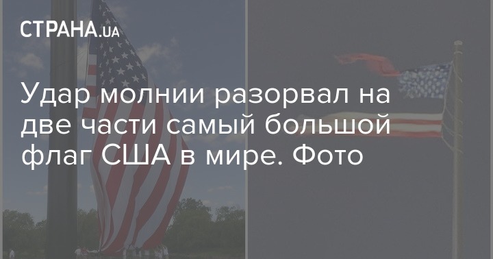 Самый большой в мире национальный флаг США разорвало пополам после удара молнии в американском штате Висконсин.