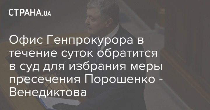 Офис Генпрокурора в течение суток обратится в суд для избрания меры пресечения Порошенко - Венедиктова