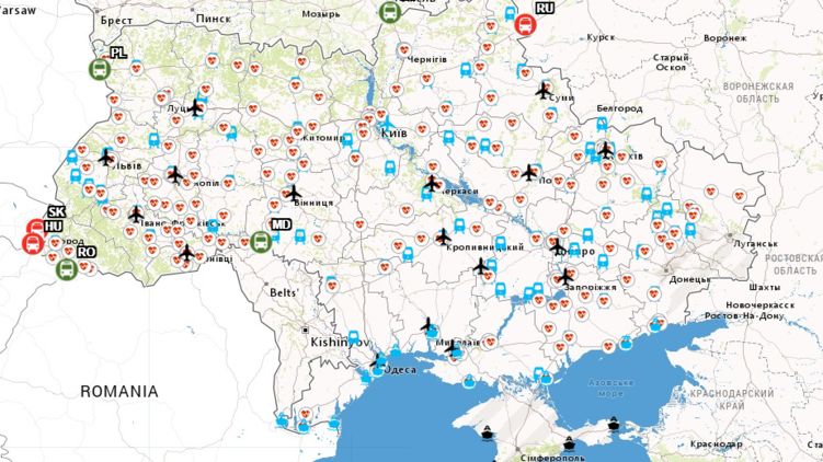 Министерство инфраструктуры Украины опубликовало интерактивную карту, на которой в реальном времени отображаются данные о режиме пересечения границ с ближайшими странами.
