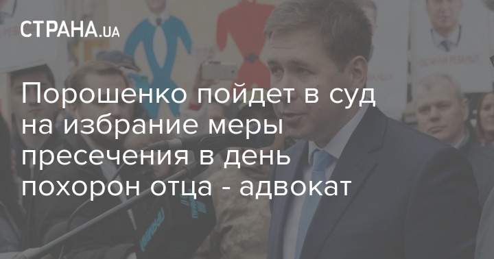 Адвокат экс-президента Украины Илья Новиков заявил, что Петр Порошенко придет в четверг на суд, где прокуратура будет для него требовать меру пресечения в виде взятия под стражу с залогом в 10 млн гривен. При этом он дал понять, что в тот же день состоятся и похороны отца Порошенко.