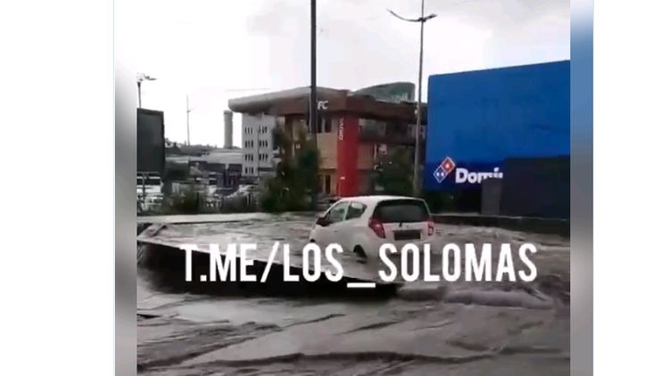 В ролике видно, как бурный поток сдвигает машину с места, а потом она начинает кружиться вокруг своей оси.