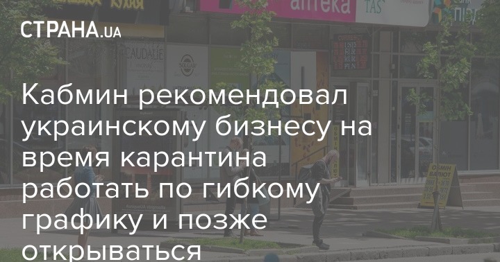 Кабмин рекомендовал украинскому бизнесу на время карантина работать по гибкому графику и позже открываться