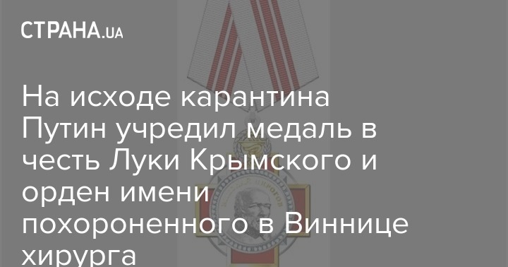 На исходе карантина Путин учредил медаль в честь Луки Крымского и орден имени похороненного в Виннице хирурга