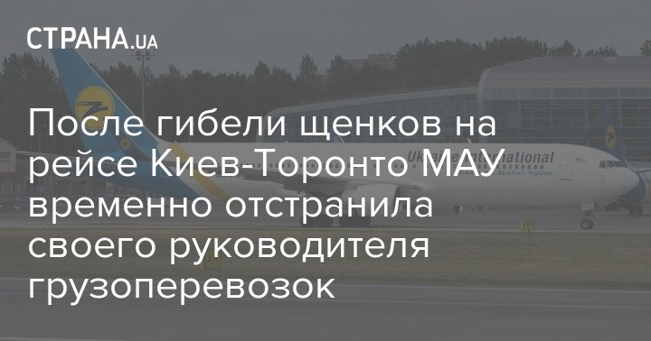 После открытия уголовного производства из-за смерти 38 щенков в грузовом отсеке самолета МАУ, летевшего из Киева в Торонто, аиакомпания "Международные авиалинии Украины" отстранила главу дирекции по грузоперевозкам на время служебного расследования.