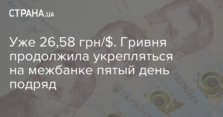 Уже 26,58 грн/$. Гривня продолжила укрепляться на межбанке пятый день подряд