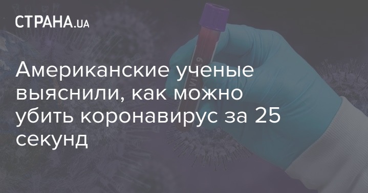 Американские ученые выяснили, как можно убить коронавирус за 25 секунд