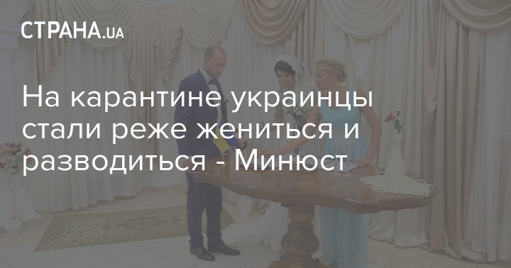 В период с апреля по май 2020 года, во время коронавирусного карантина в Украине, количество бракосочетаний сократилось на 54,1% (на 14 787 - до 12 545), а разводов - на 69,7% (на 3931 - до 1709) по сравнению с 2019 годом.