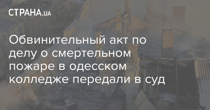 Дело о смертельном пожаре в одесском колледже экономики, права и гостинично-ресторанного бизнеса, который произошел 4 декабря и унес жизни 16 человек, будет слушаться в Приморском райсуде Одессы. Облпрокуратура уже направила туда обвинительный акт против директора одесского колледжа, заведующего хозяйством, заведующего дневным отделением экономики и предпринимательства и бывшего заместителя директора по административно-хозяйственной работе.